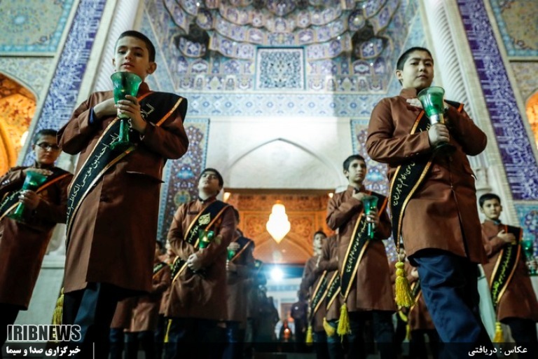 لاله گردانی خادمان شاهچراغ در شب شهادن امام رضا (ع)