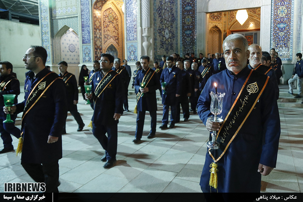 در این آئین، خادمان حرم مطهر با در دست داشتن لالههای روشن به سمت بارگاه مطهر حضرت شاهچراغ (ع) حرکت و پس از قرائت زیارتنامه، به همراه زائران و ارادتمندان این امامزاده همام به مرثیهسرایی و عزاداری پرداختند.