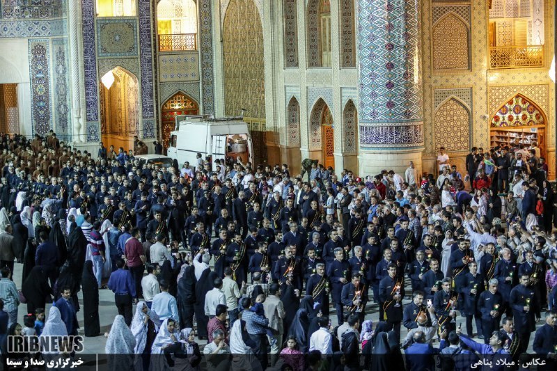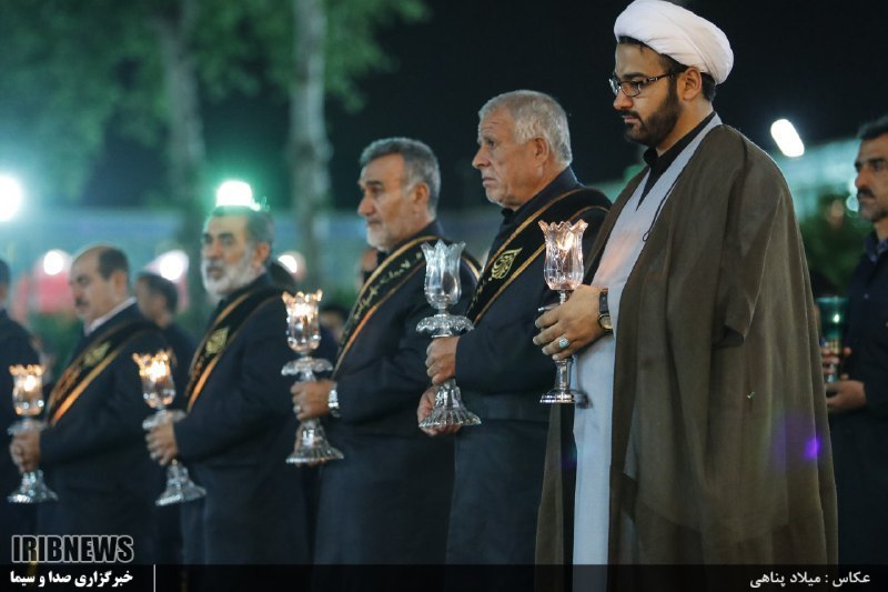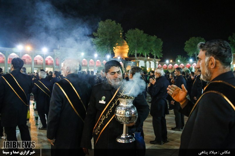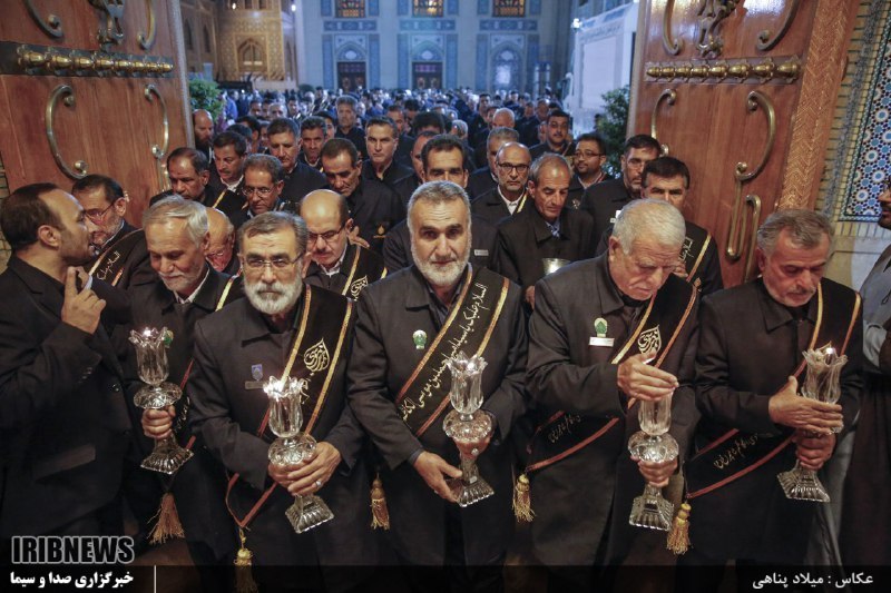 آئین لاله گردانی خدام در شب شهادت حضرت احمد بن ‌موسی شاهچراغ (ع)