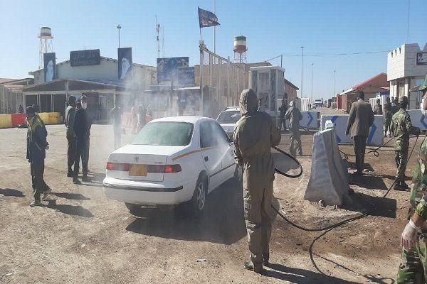 ضدعفونی معابر و خودروهای مرز دوغارون تایباد به همت نیروهای ارتش