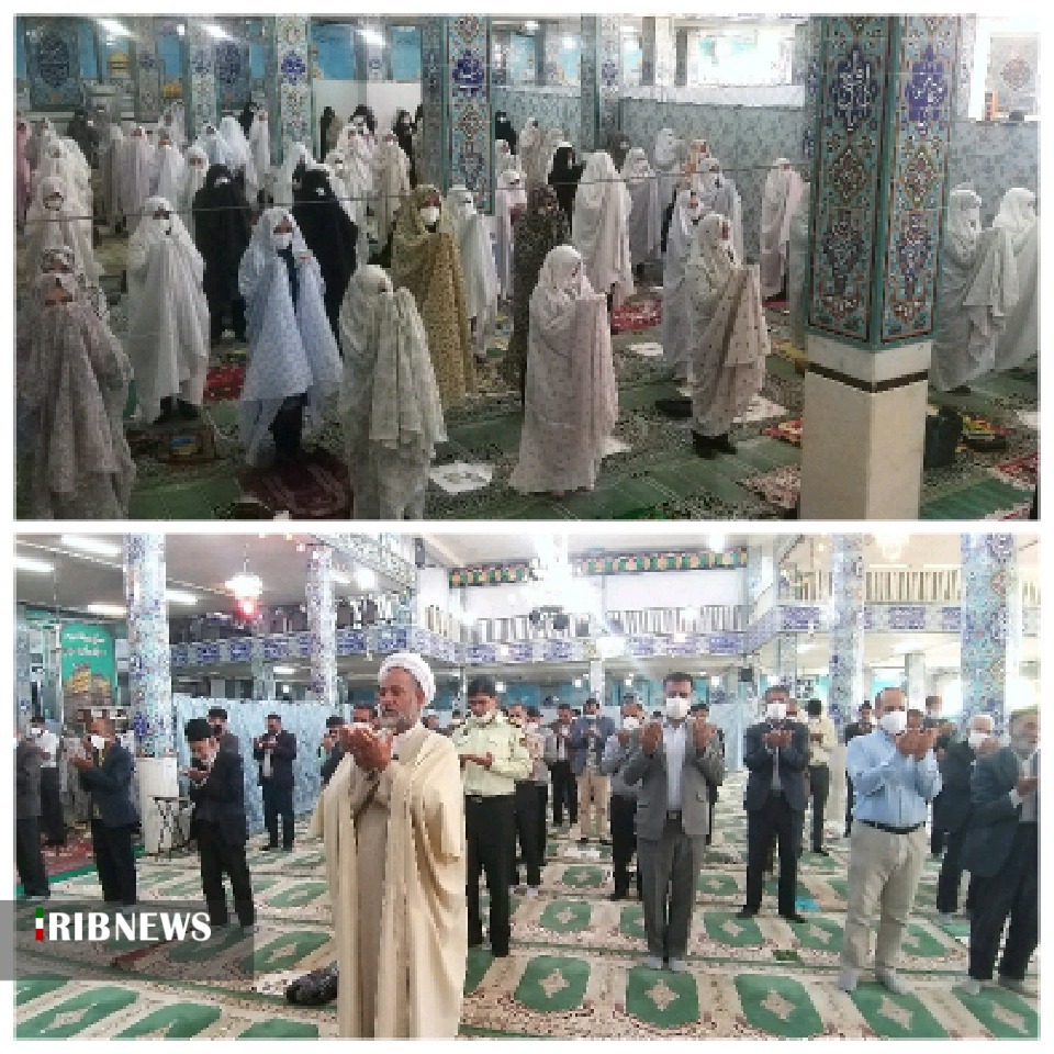 نمازگزاران دهاقانی هم پس از یک ماه روزه داری و راز ونیاز با معبود خویش در صفوف نماز با رعایت فاصله گذاری اجتماعی حاضر شدند.