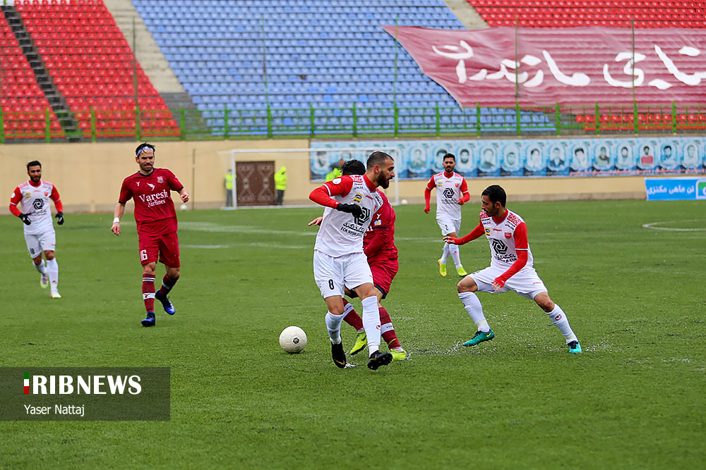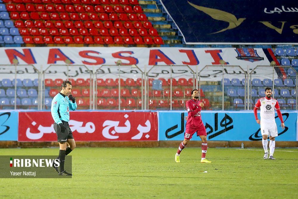 به گزارش گروه عکس خبرگزاری صدا و سیما؛ در تنها بازی باقیمانده از هفته پنجم لیگ برتر فوتبال تیم نساجی در ورزشگاه شهید وطنی قائم شهر و با قضاوت موعود بنیادی فر و زیر بارش شدید باران میزبان پرسپولیس بود. در دقیقه ۴۰ مجتبی بیژن روی ضربه کاشته با ضربه سر دروازه پرسپولیس را باز کرد تا حامد لک برای اولین بار در لیگ امسال دروازه‌اش باز شود. در پایان نیمه اول این دیدار، با نتیجه یک صفر به سود نساجی به پایان رسید. در دقیقه ۸۴ سیامک نعمتی با شوتی زیبا دروازه نساجی را باز کرد تا بازی به تساوی کشیده شود و در پایان، این بازی با نتیجه یک بر یک مساوی به پایان رسید.
