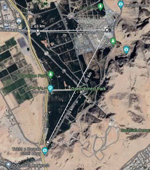 موقیعت مکانی وضعیت انفجار در گلزار شهدای کرمان