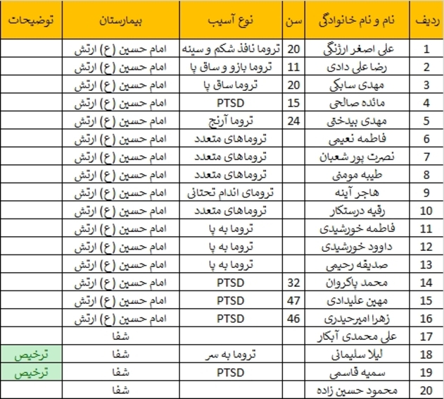 اسامی برخی از مجروحان حادثه تروریسی گلزار شهدا کرمان