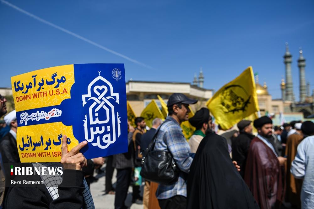 صبح امروز ۸ فروردین ماه ۱۴۰۴ راهپیمایی روز جهانی قدس با شعار «علی العهد یا قدس» با حضور همه اقشار مردم در صد‌ها نقطه کشور از جمله شهر خمارلو در ارسباران و نقطه صفر مرزی در استان آذربایجان شرقی و همچنین در شهر مقدس قم و شهر کرج در استان البرز برگزار شد.