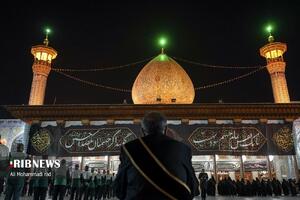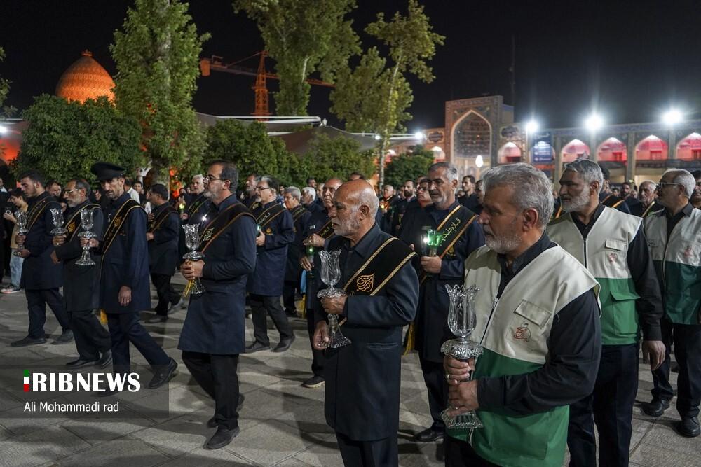 مراسم لاله گردانی خدام در حرم احمد ابن موسی علیه سلام (شاهچراغ) در شام غریبان شهادت امام رضا (ع) برگزار شد